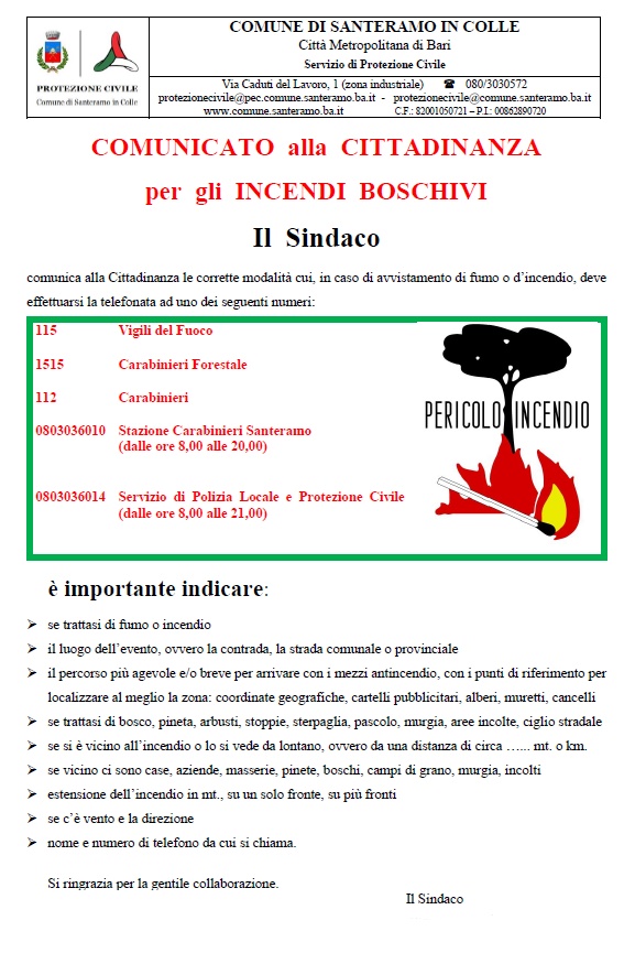 Incendi boschivi: corrette modalità cui, in caso di avvistamento di fumo o d’incendio, deve effettuarsi la telefonata ai numeri d'emergenza