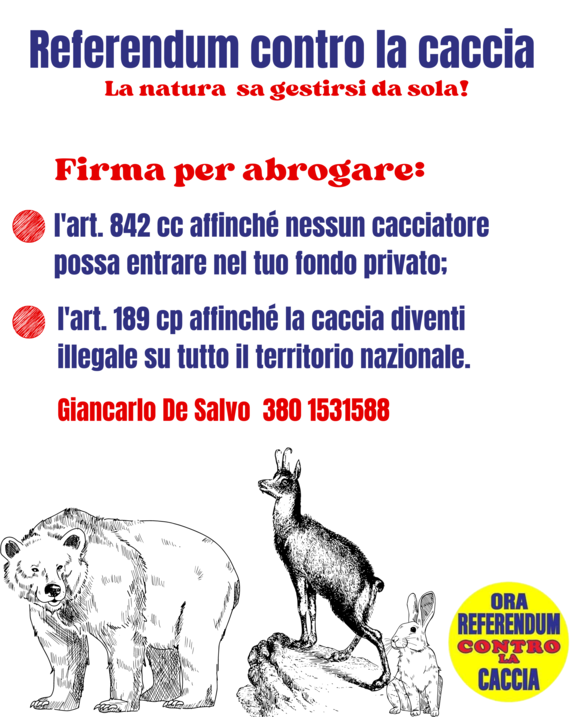 Per maggiori informazioni consultare il sito web https://www.referendumsiaboliamolacaccia.it/